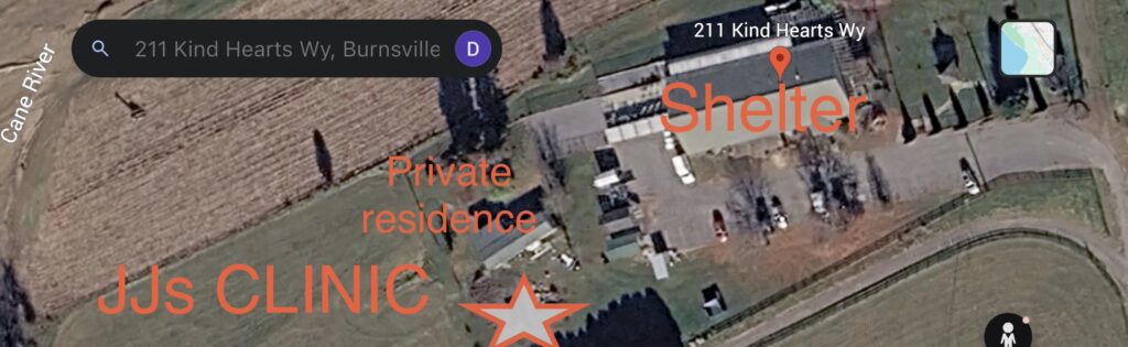 Find us at 211 Kind Hearts Way, Burnsville, NC 28714. Travel past the shelter and you will see the clinic as a stand alone building to the left of the shelter.