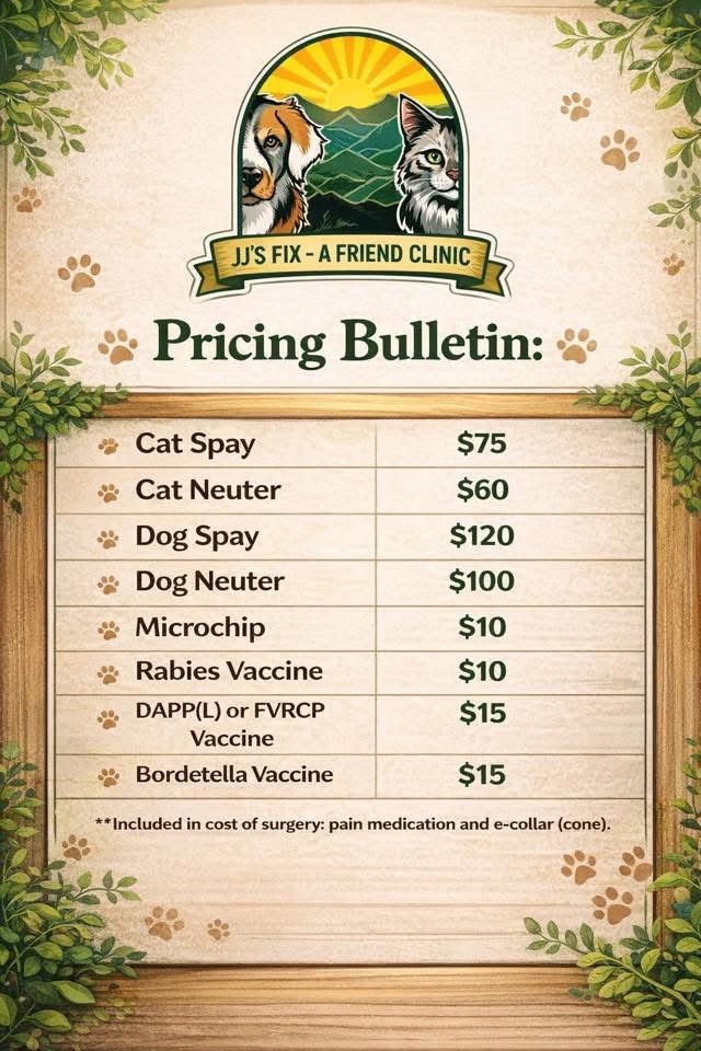 pet will receive a rabies vaccine the day of surgery for $10. This is a state law requirement. - Staff will REVIEW the appointment; we will reach out to you if we need to